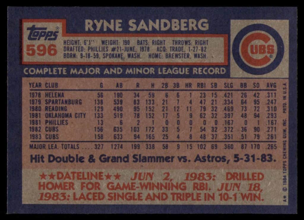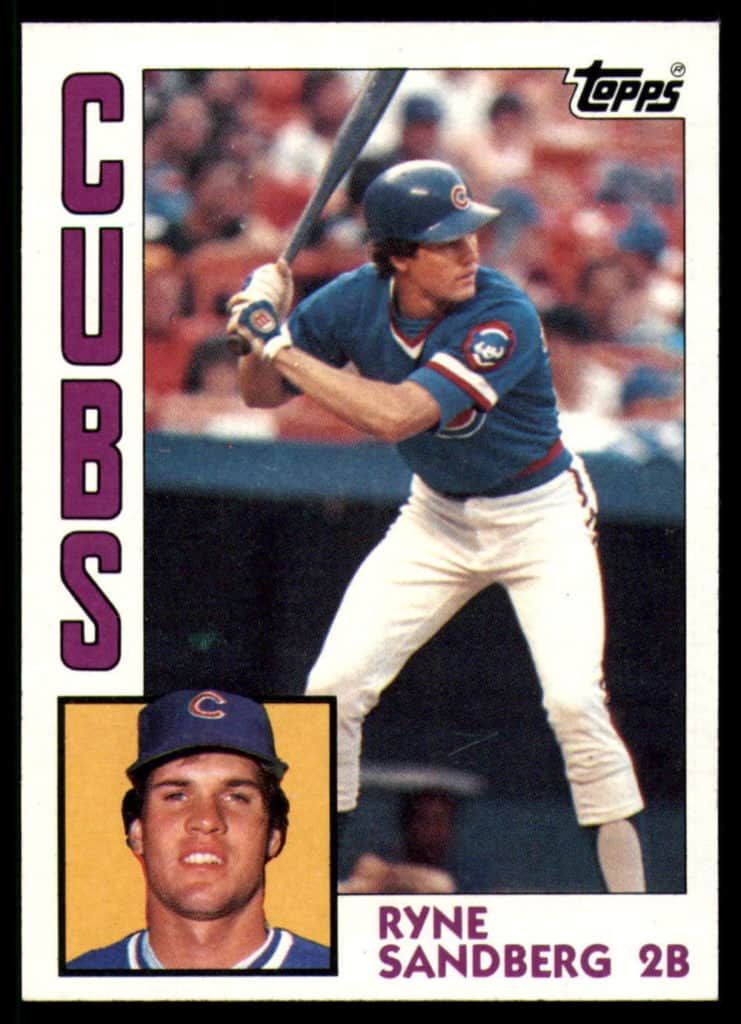 Yes I know how does Ryne Sandberg make this list. Well because there were not many good rookies in 1984, and since this is his second year card, it is very collectable in good condition. The 1984 Topps Ryne Sandberg shows the future hall of fame second baseman in his hitting stance waiting to hit the ball. Then there is the standard headshot that shows Ryne with somewhat of a fake smile. At this point in time Ryne has yet to be the star hitter that he became. But just wait…